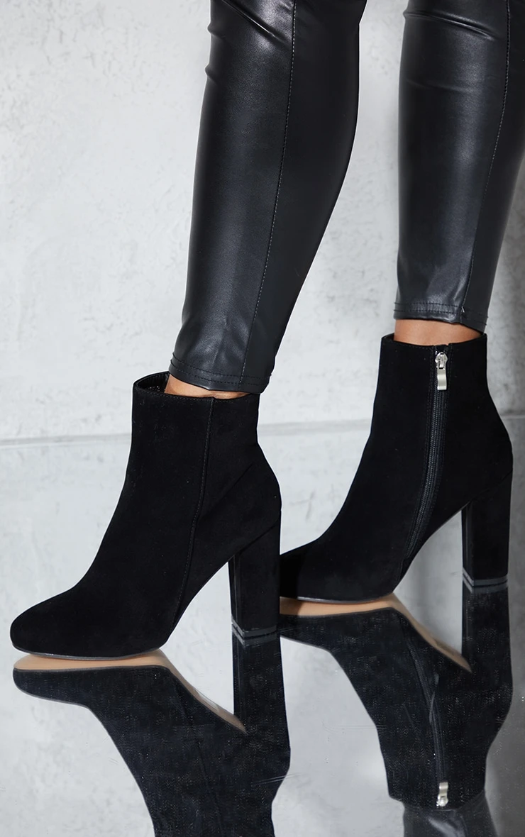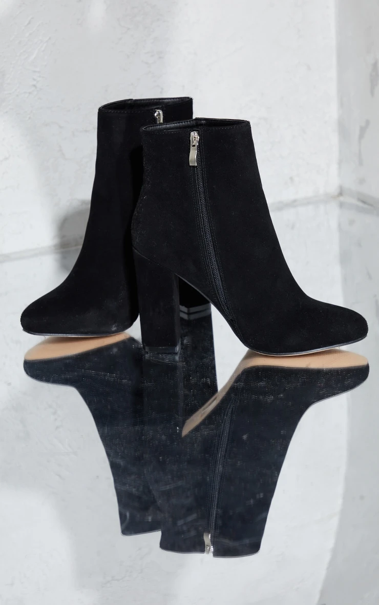 Prettylittlething Behati Black Faux Suede Ankle Boots Black