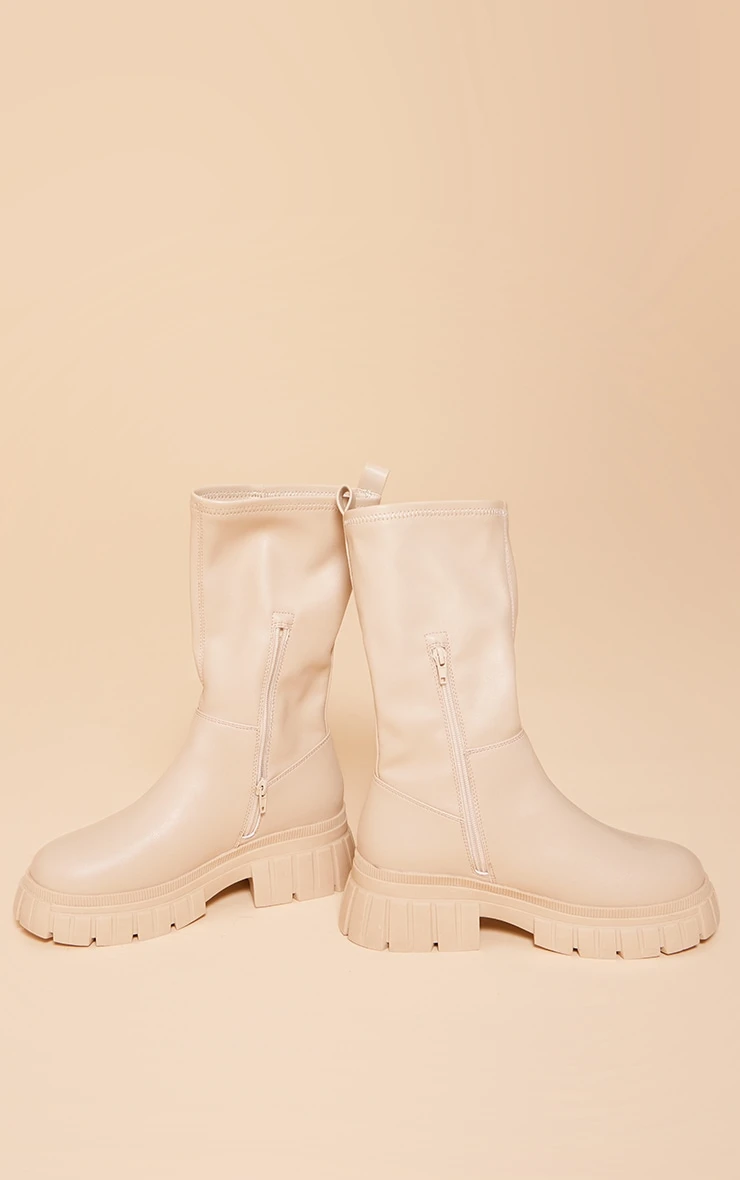Be the first to review “Prettylittlething Beige Wide Fit PU Chunky Platform Calf High Boots Beige” Cancel reply