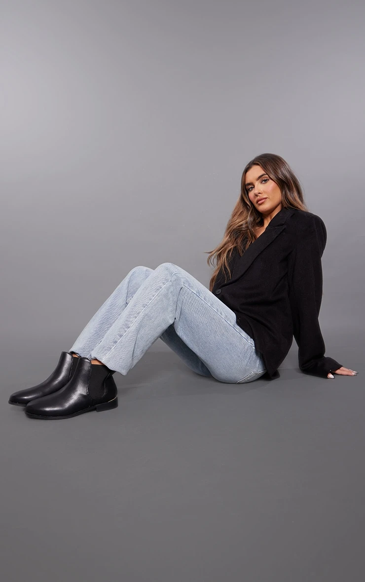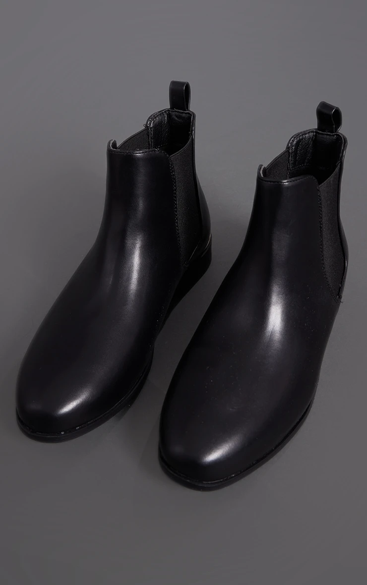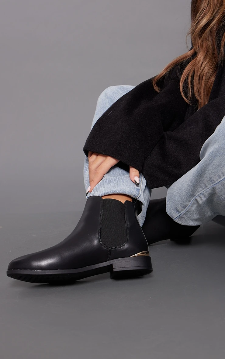 Prettylittlething Black Pu Round Toe Gold Trim Ankle Chelsea Boots Black