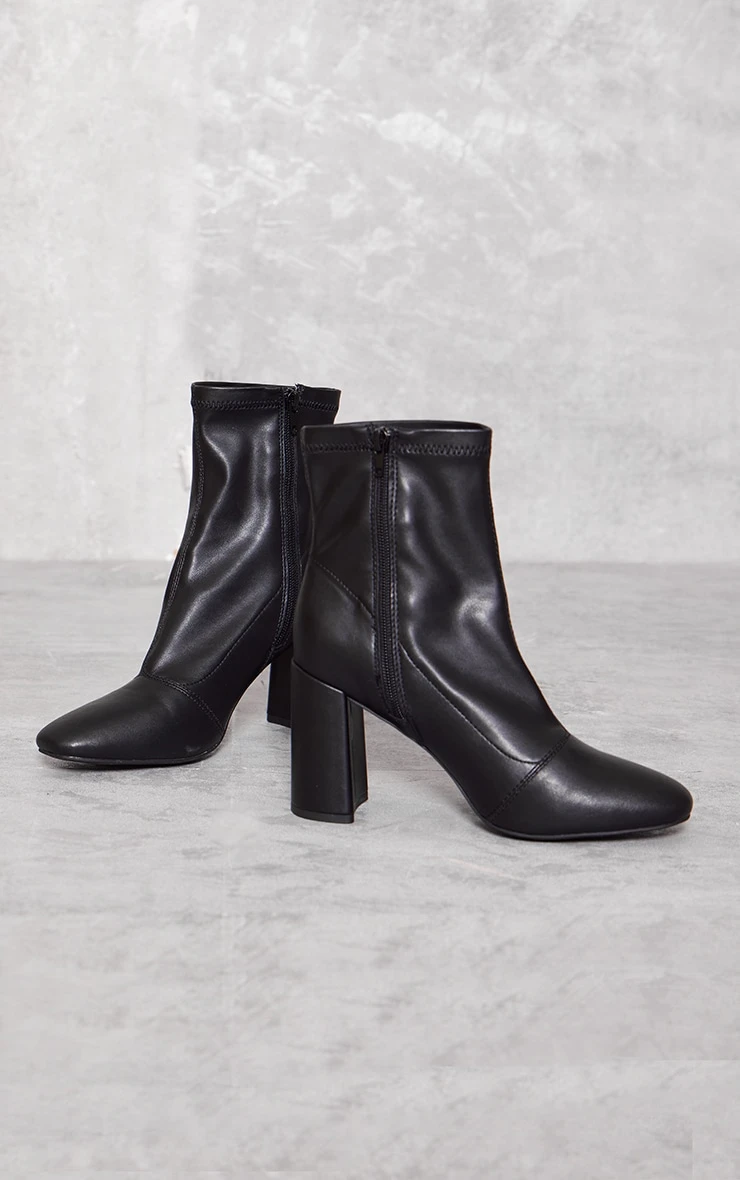 Prettylittlething Black PU Round Toe Heeled Ankle Sock Boots Black