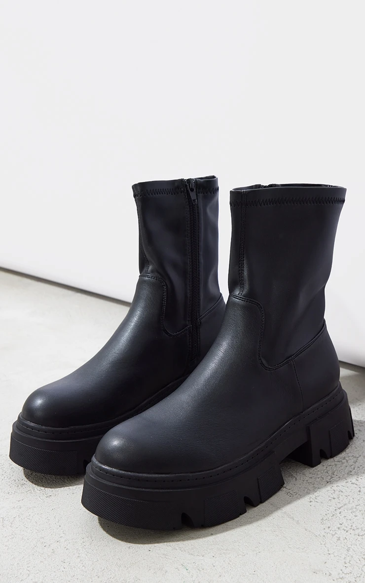 Be the first to review “Prettylittlething Black Pu Textured Extreme Cleated Sole Ankle Sock Boots Black” Cancel reply