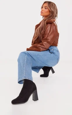 Prettylittlething Black Wide Fit Faux Suede Block Heeled Sock Ankle Boots Black