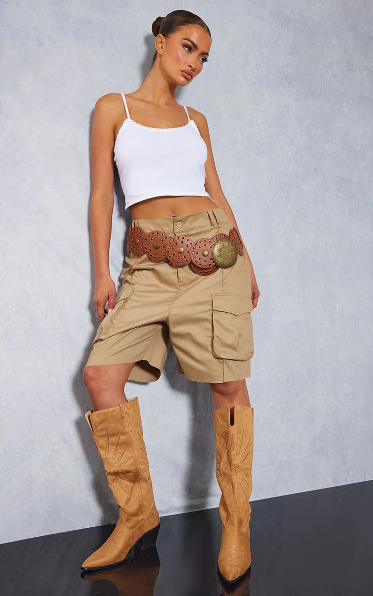 Prettylittlething Camel Western Stitch Detail Knee High Boots Camel