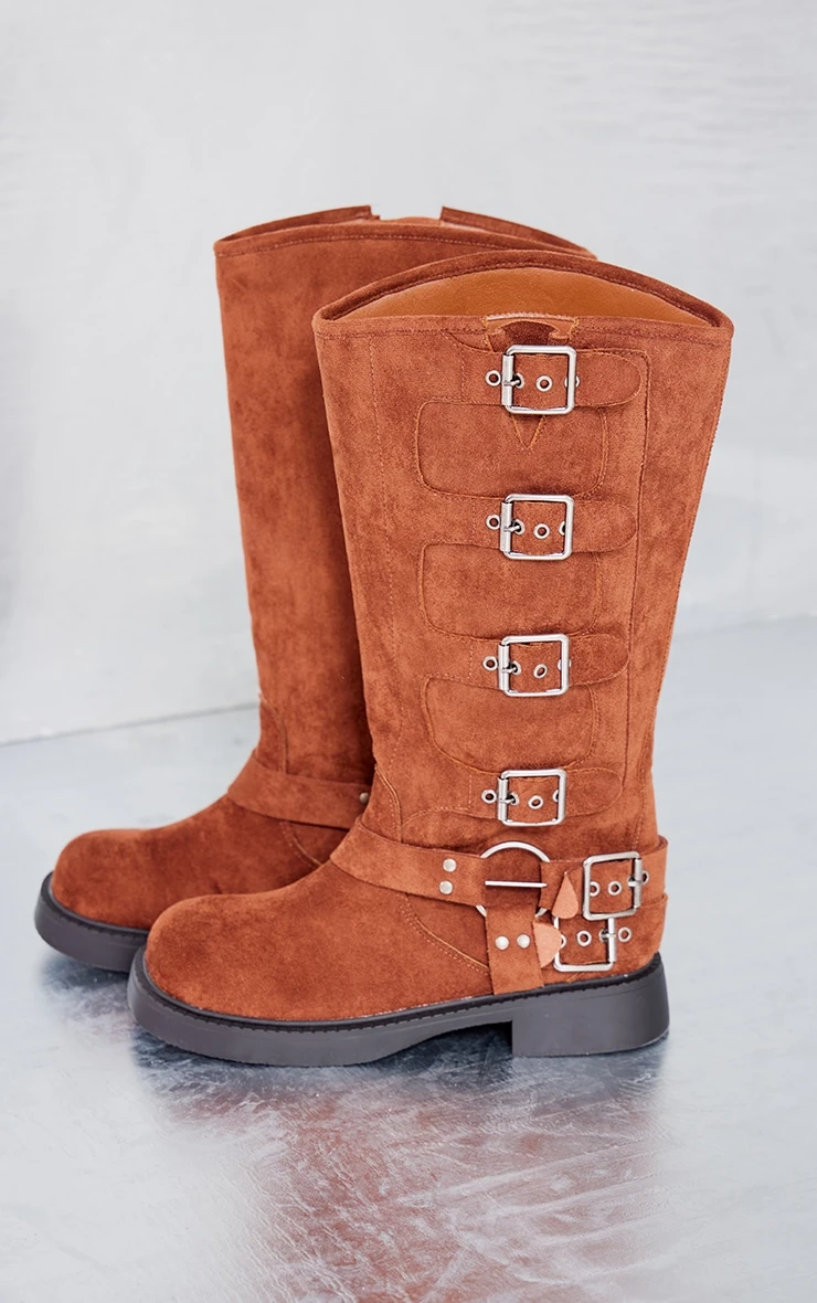 Be the first to review “Prettylittlething Chocolate Faux Suede Square Toe Brushed Buckle Knee Boots Chocolate” Cancel reply