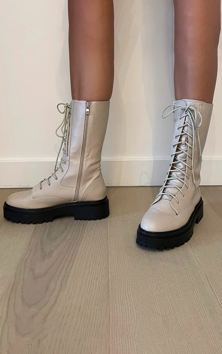 Get ready for AW with these boots doll. Featuring a cream material with a lace-up front and a calf length. Team these with your A/W pieces for a look we love.