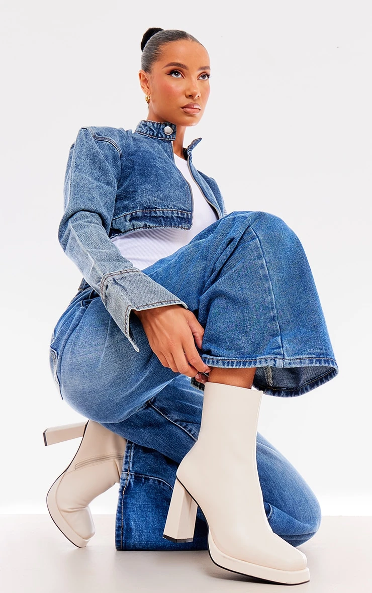 We are obsessing over heeled boots these season and these cream faux leather square toe block heeled ankle boots are no exception. Brought to you in a cream faux leather material with a square toe design, what more could you need doll? Its block heel gives you a comfy fit like no other. Style with a double denim look to make a statement wherever you step foot.