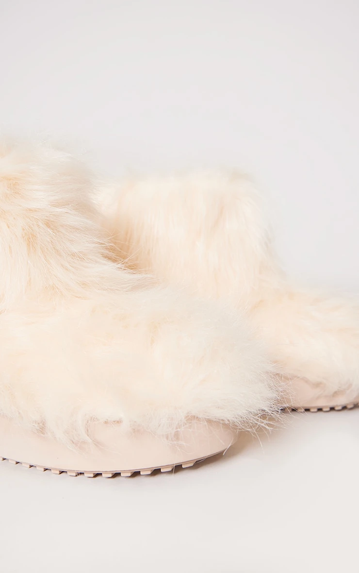 Prettylittlething Cream Fluffy Faux Fur Round Toe Ankle Boots Cream