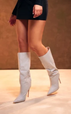 Be the first to review “Prettylittlething Silver Pu Matt Fold Over Knee Block Heeled Boots Silver” Cancel reply
