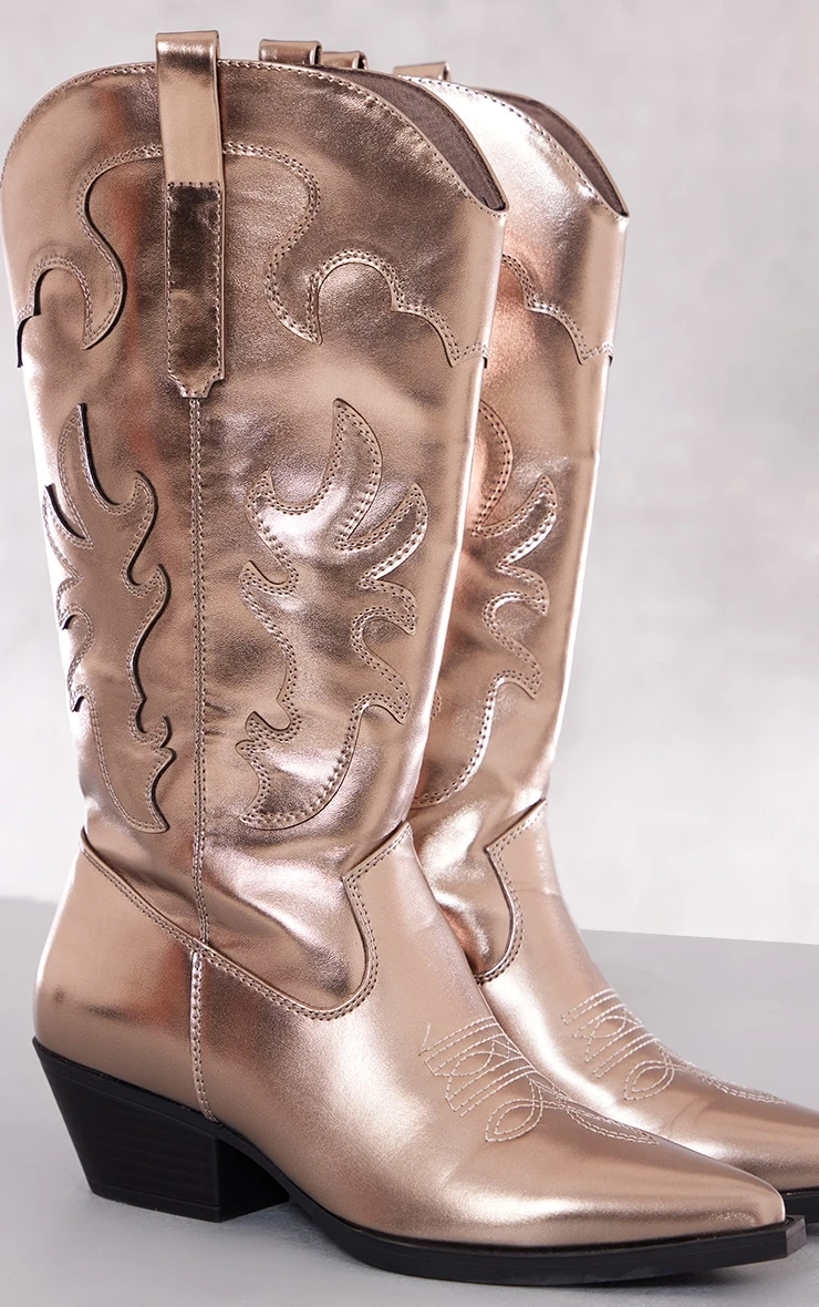 Be the first to review “Prettylittlething Silver Pu Point Toe Textured Low Block Heel Western Boots Grey” Cancel reply