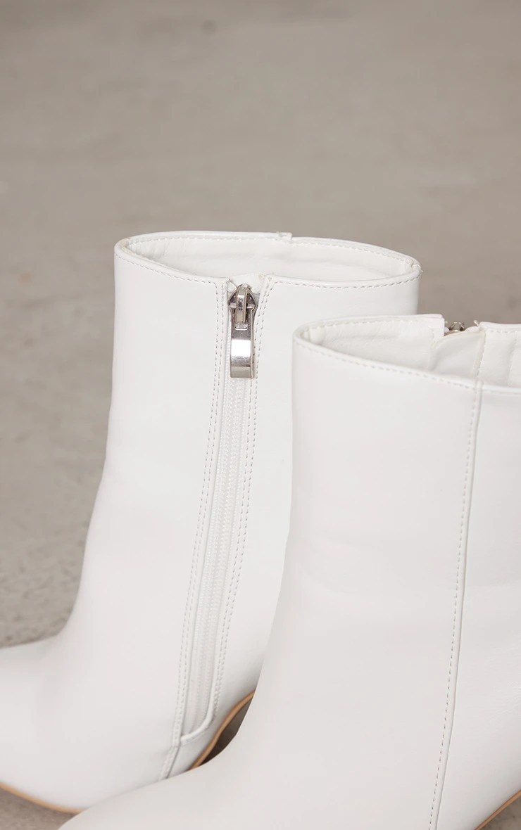 Prettylittlething White Behati Faux Leather Ankle Boots White