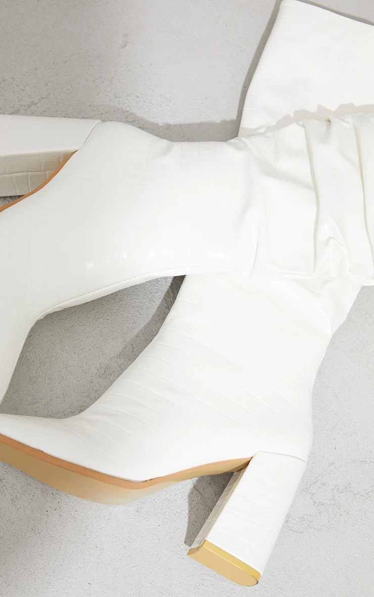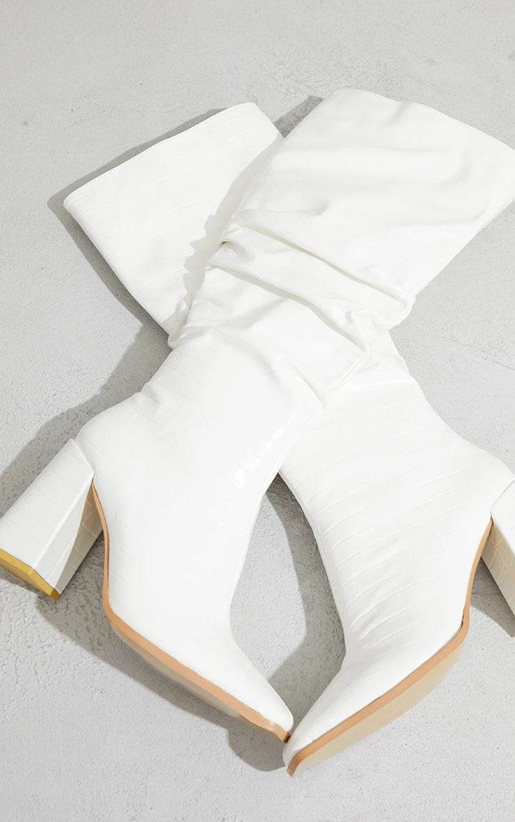 These white high block heel knee high boots are sure to elevate any look doll. Brought to you in a white material with a block heel and a knee high design, what more could you ask for? Team these knee high boots with your weekend look for a statement finishing touch.