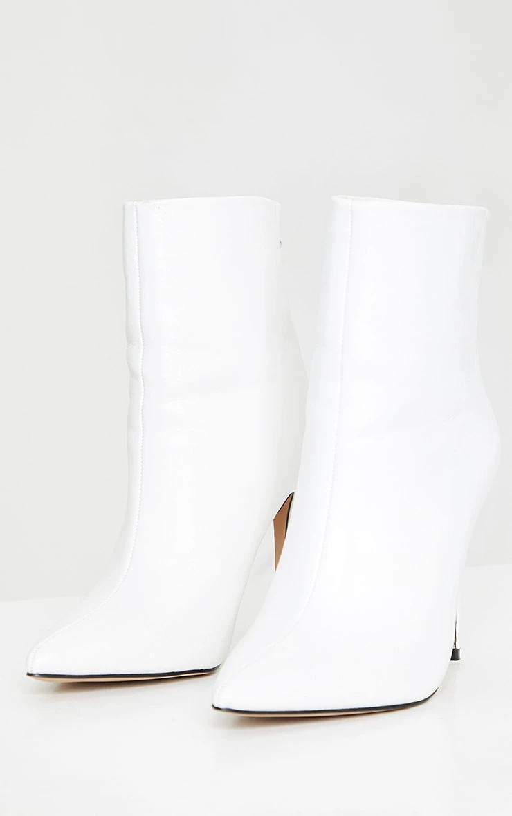 Prettylittlething White Wide Fit Mid Heel Pointed Ankle Boots White