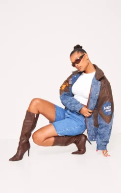 Prettylittlething Brown Vintage Point Toe Motor Cross High Heeled Knee Boots Brown