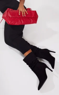 Prettylittlething Black Faux Suede Round Toe Buckle Detail Chunky Platform Ankle Boots Black